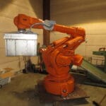 including scraper conveyor, ABB robot for stacking and an automatic plastic wrapper