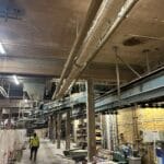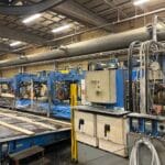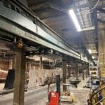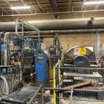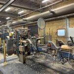 Chip conveyor under saw line